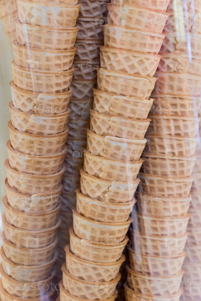 Вафельные рожки за стеклом витрины