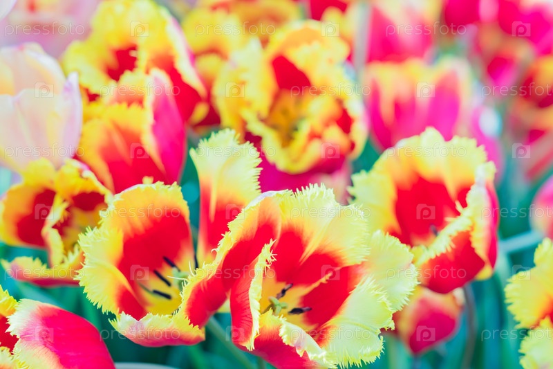 Обои фон красочного яркого поля тюльпанов