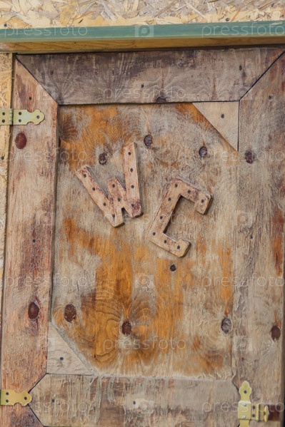 Знак туалета WC на старой деревянной двери