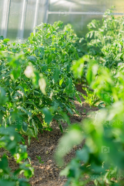 Крупный план томатных растений, растущих в теплице