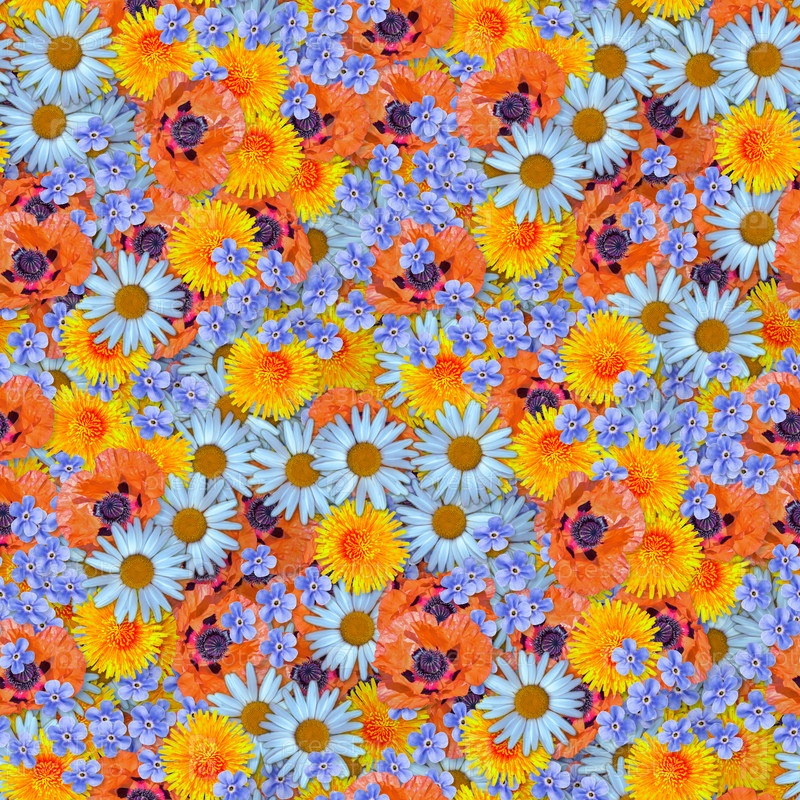 Текстура бесшовные модели с цветами. ромашки, незабудки и одуванчики. элементы декоративного оформления