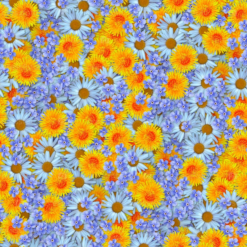 Текстура бесшовные модели с цветами. ромашки, незабудки и одуванчики. элементы декоративного оформления