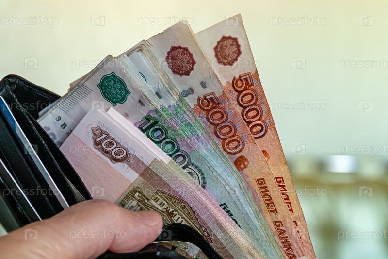 Зарплата в вашем кошельке. российский рубль. Деньги в вашем кошельке. крупным планом