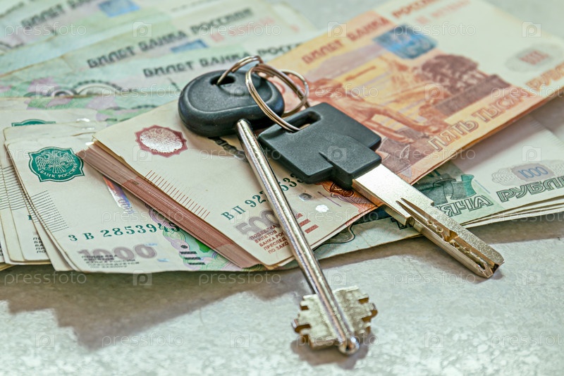 Ключи от квартиры находятся на крупной сумме российских денег. Покупка дома за наличные