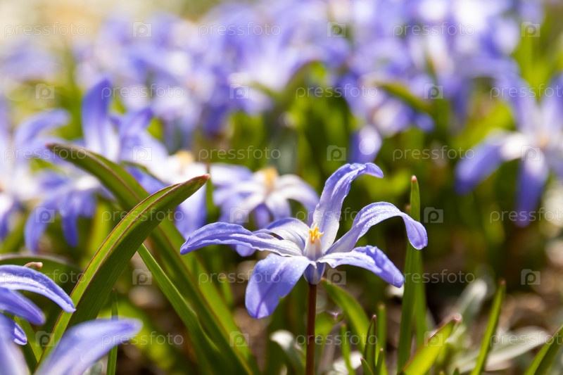 Примулы хионодокса. Общий вид цветущего растения, крупный план