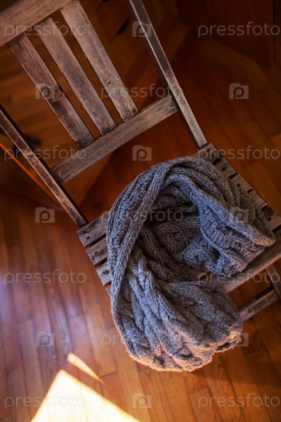 Шерстяной шарф лежит на деревянном стуле
