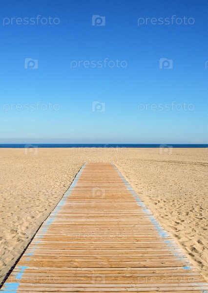 Пустой пляж и деревянная дорожка