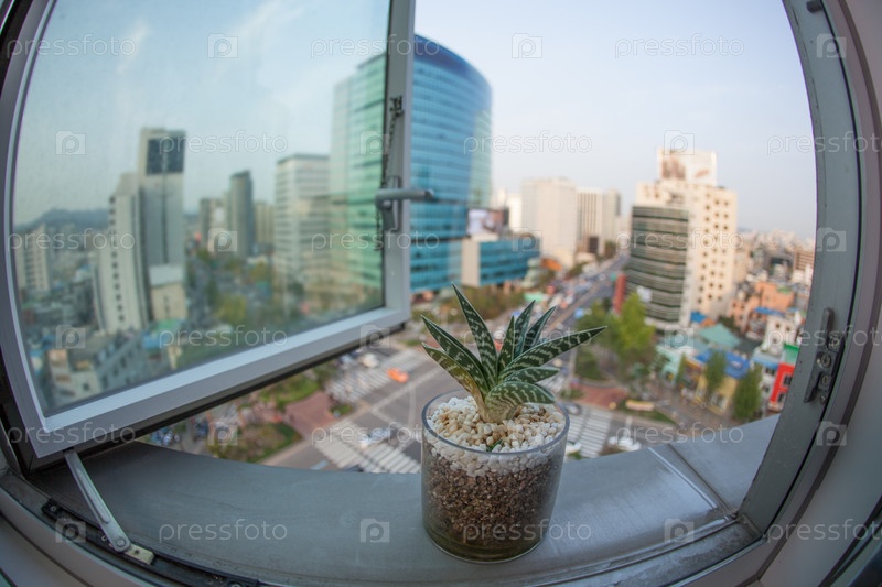 Город Сеул в Южной Корее, вид из окна