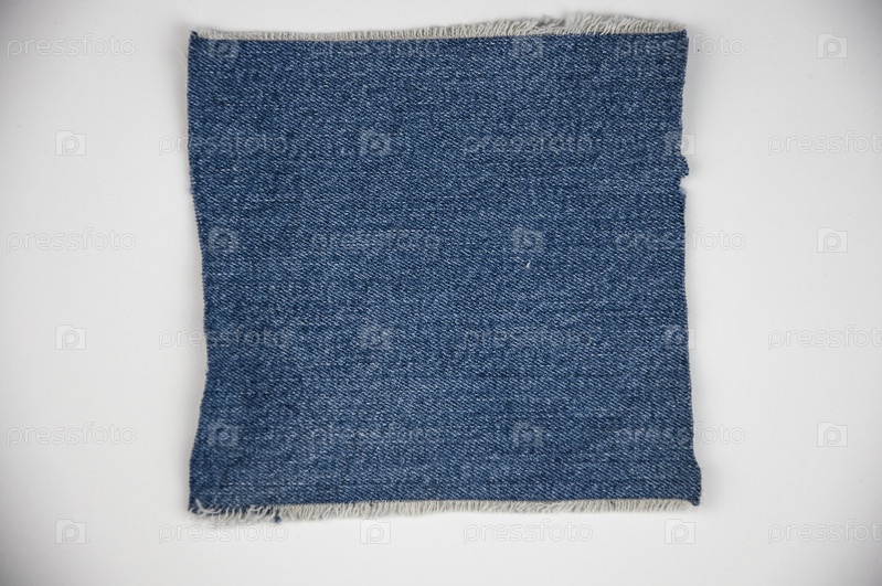 Разрушенные рваные джинсовые синие джинсы с потертой лоскутной тканью на белом фоне