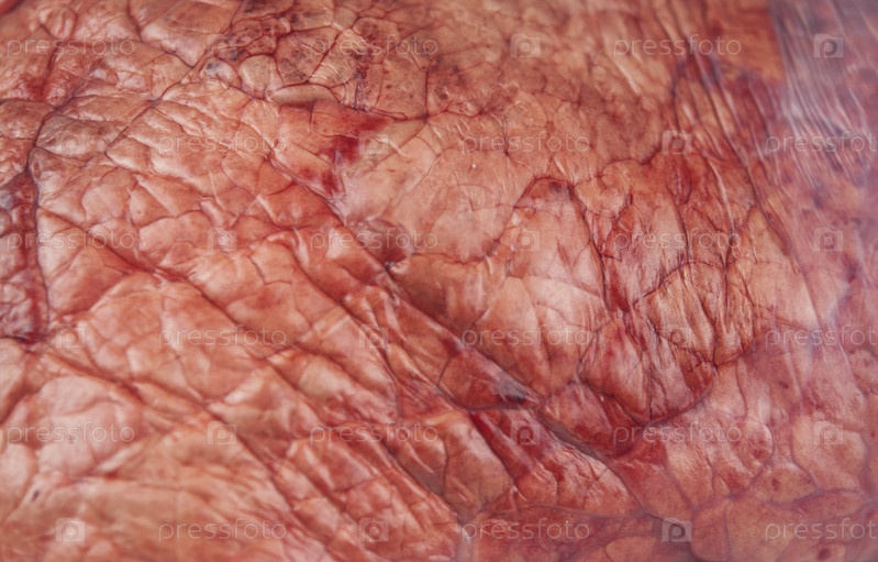Сырые говяжьи легкие на белом фоне. Вид сверху