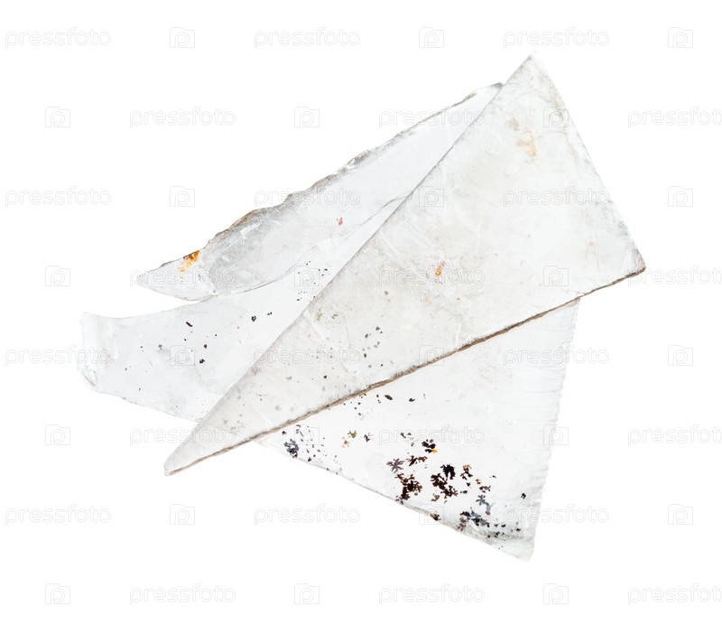 Пластинки мусковитовой слюды, изолированные на белом фоне