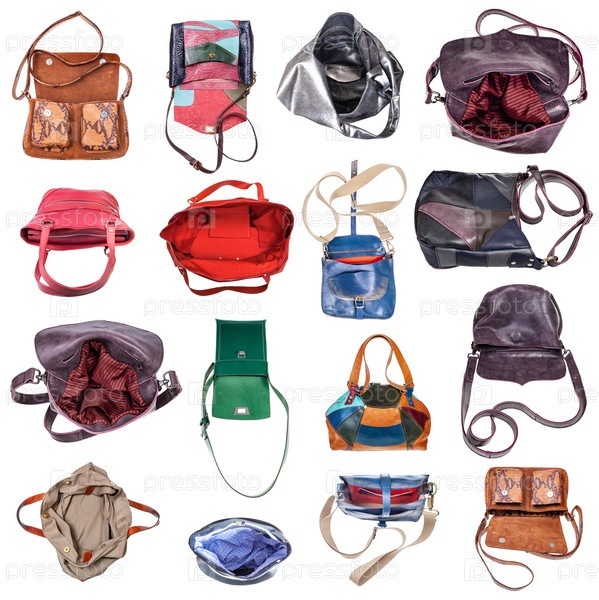 Набор различных дамских сумок ручной работы изолирован
