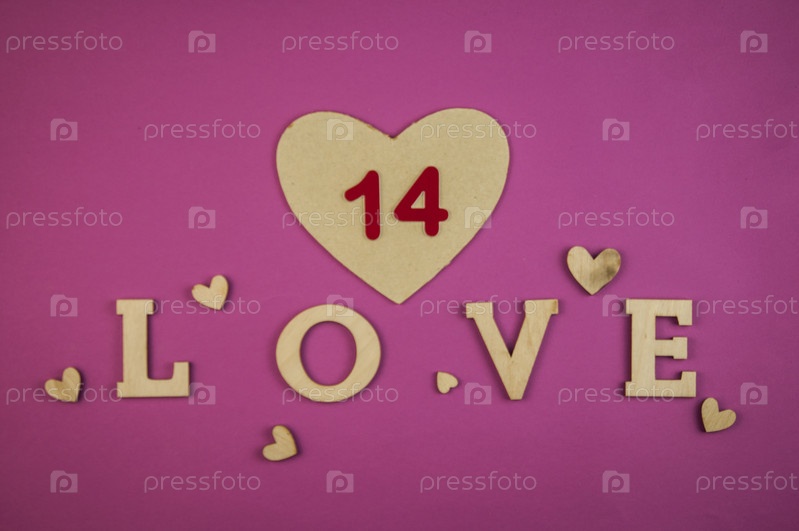 Слово Любовь с маленькими сердечками на фоне розовой бумаги крупным планом