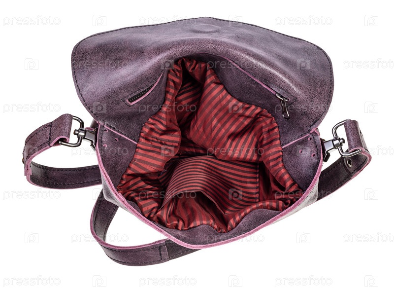 Вид сверху на открытую пустую сумку через плечо ручной работы