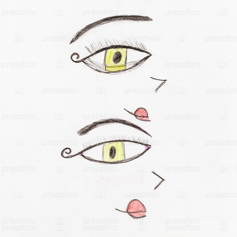 Пара декоративных человеческих желтых глаз карандашами