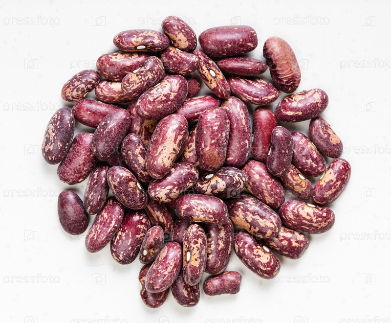 Куча красных пятнистых бобов пинто крупным планом на сером