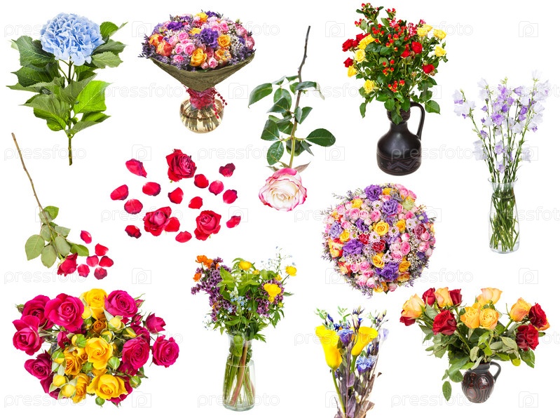 Набор различных цветов и букетов цветов