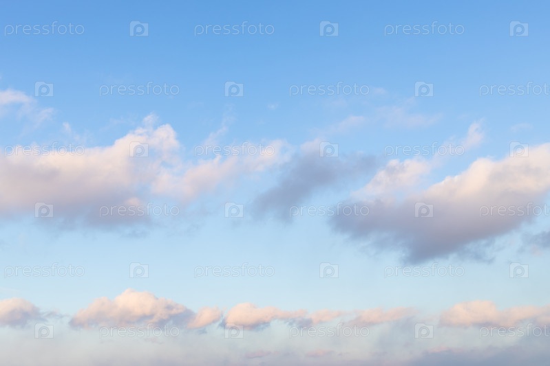 Цепь пушистых облаков в голубом закатном небе