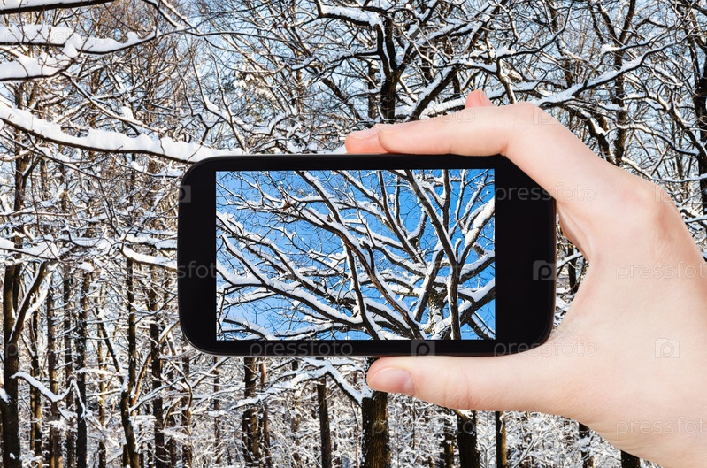 Переплетение дубовых ветвей в лесу зимой