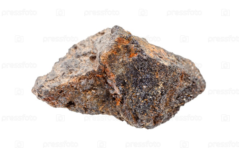 Неполированная псиломелановая порода, изолированная на белом