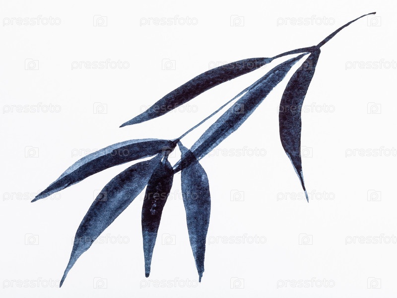 Ветка бамбука нарисована черной акварелью