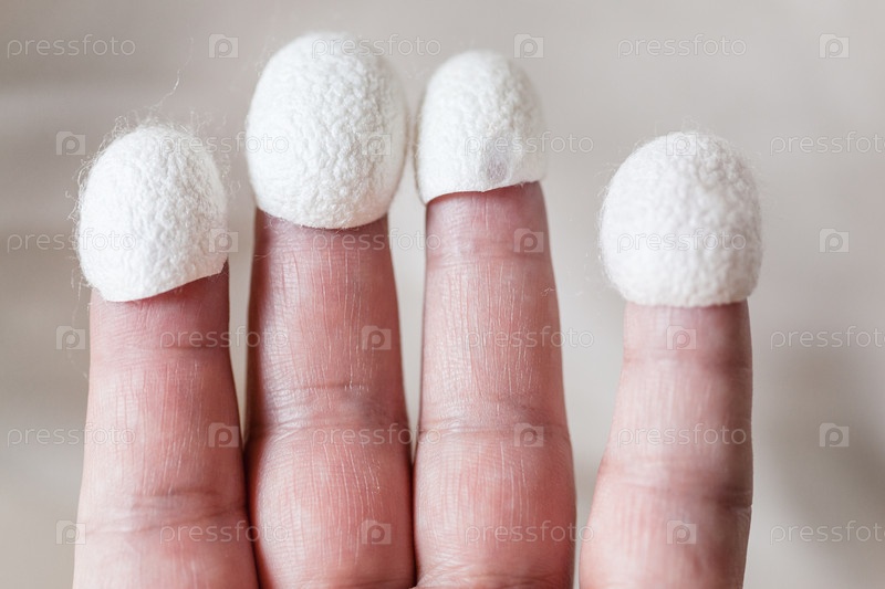 Коконы из натурального шелка носят на кончиках пальцев