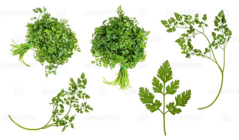 Набор свежих листьев травы кервель изолирован