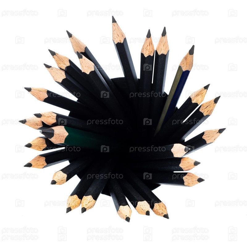 Вид сверху на многие графитовые карандаши в круглом держателе