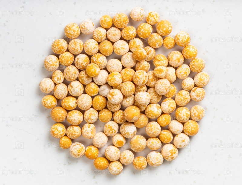 Куча сушеного цельного желтого гороха крупным планом на сером