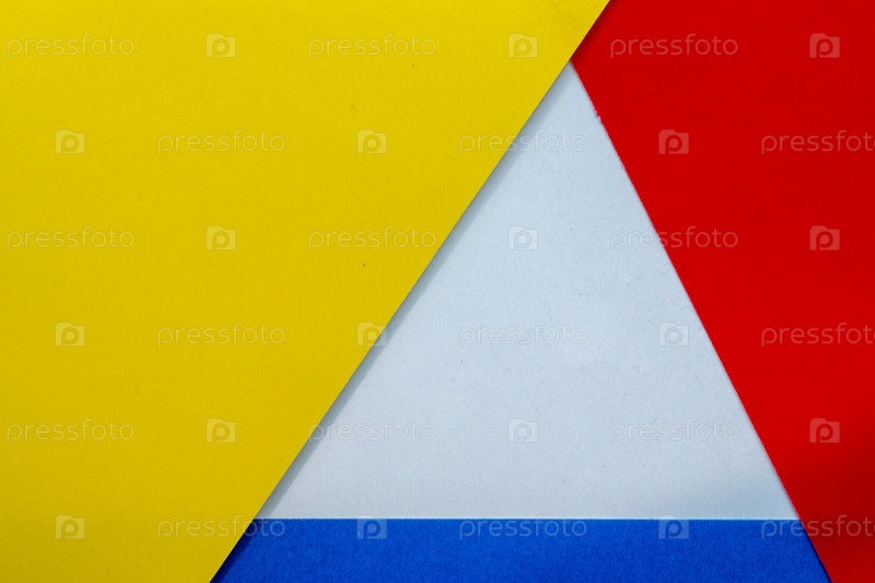 Абстрактная бумага — красочный фон, креативный дизайн для пастельных обоев. Желтый, белый, красный и синий цвета. Столкновение России и Украины, война. Символ переплетения и наложения