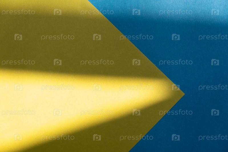 Абстрактная бумага — красочный фон, креативный дизайн для пастельных обоев. Желтый и синий цвета. Два листа бумаги. Цвета украинского флага. Треугольный луч света