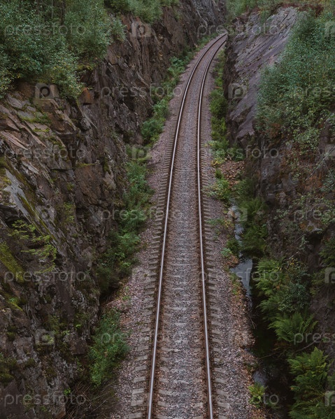 Железная дорога в скале в Карелии