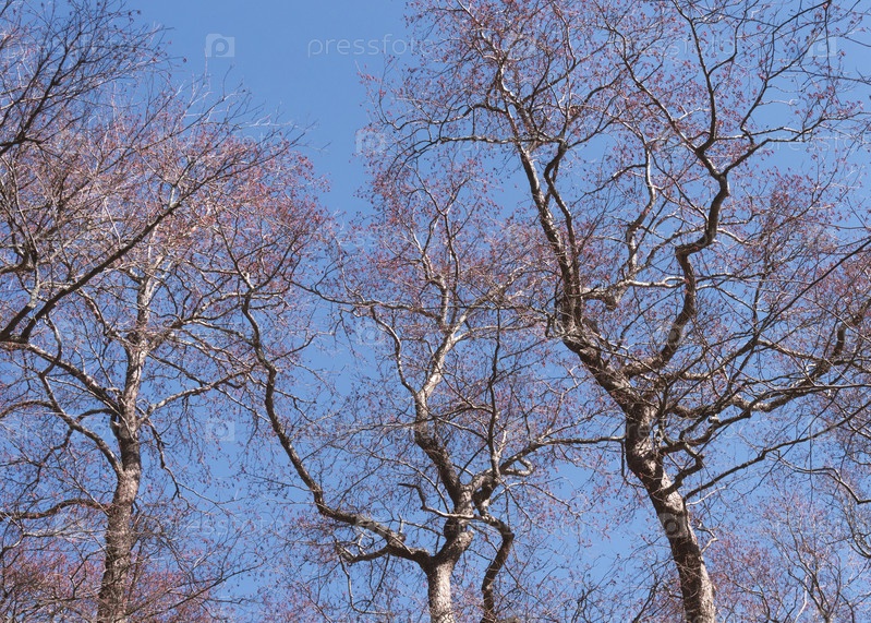 Деревья на фоне неба весной