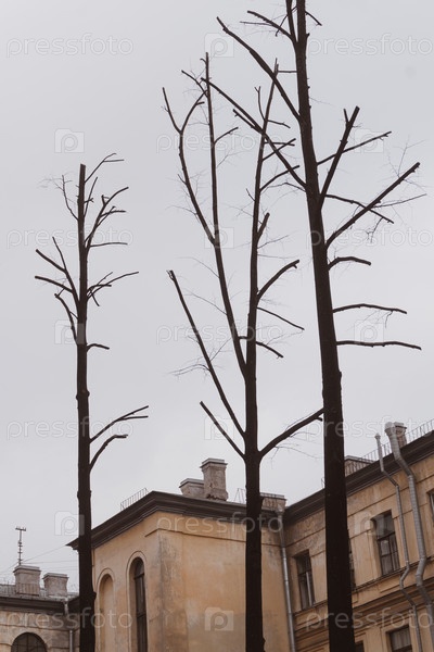 Деревья без листьев во дворе