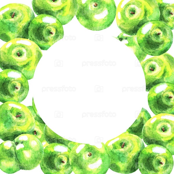 Рамка из зеленых яблок, акварель