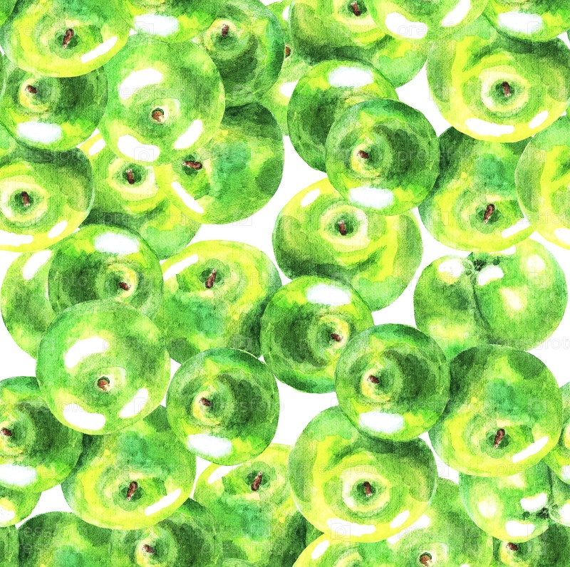 Зеленые яблоки, бесшовные, акварель