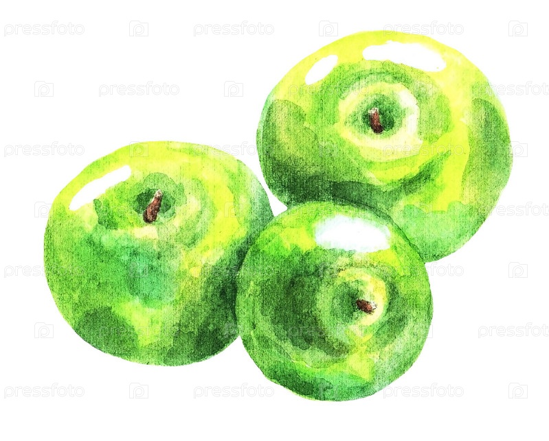Зеленые яблоки, акварель