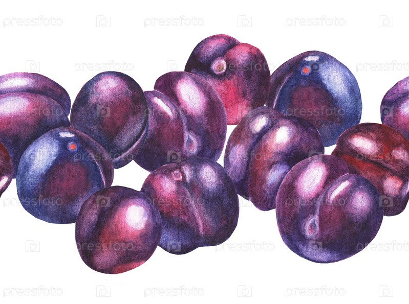 Набор слив. Бесшовный узор. Акварель