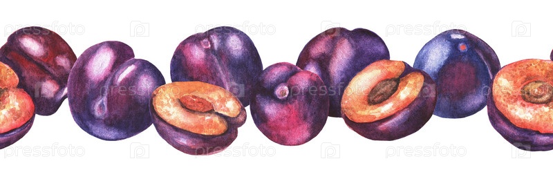 Набор слив. Бесшовный узор. Акварель