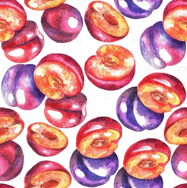 Бесшовный узор из слив, акварель