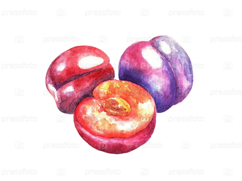Группа слив с половинкой, акварель