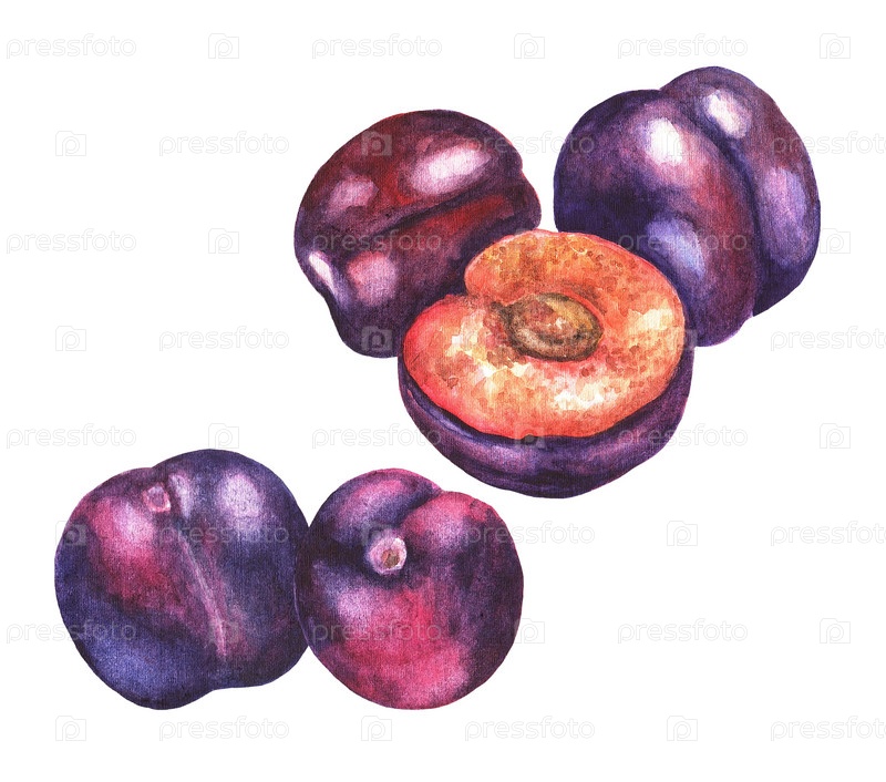 Набор слив. Акварель