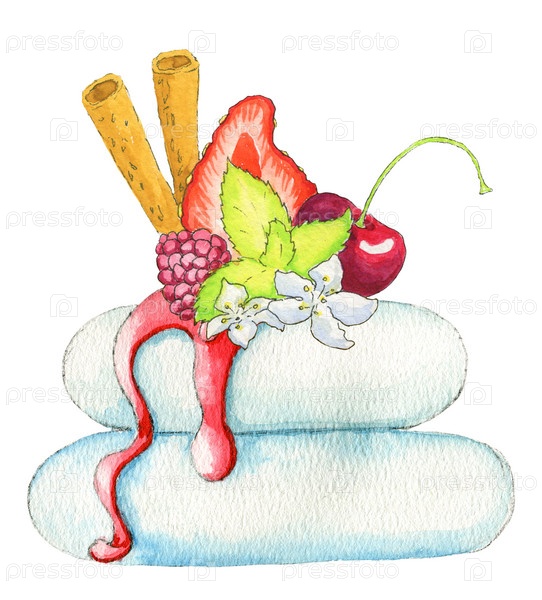 Акварель - еда - торт - глазурь - ягоды