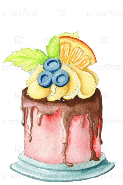 Акварель - еда - торт - апельсин