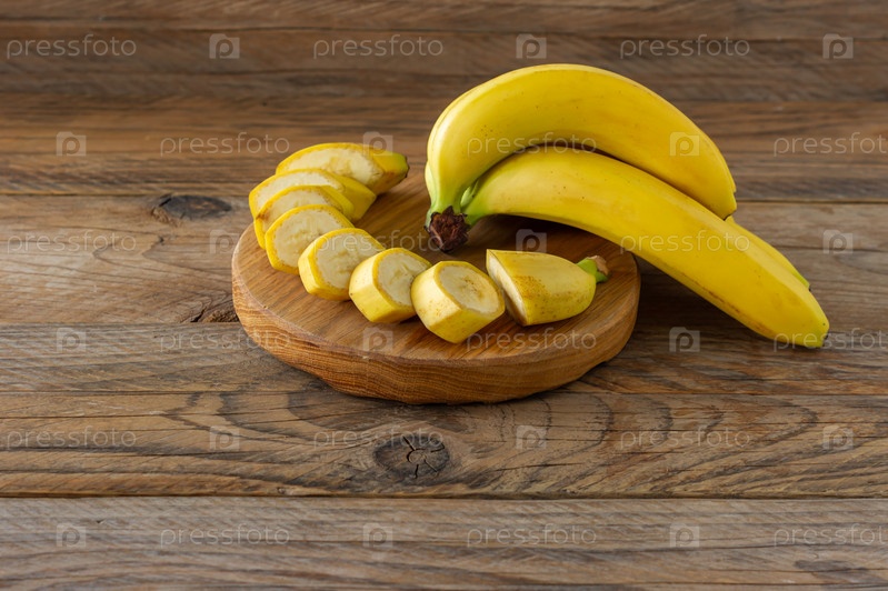 Спелые бананы на деревянном фоне. Вкусные полезные тропические фрукты