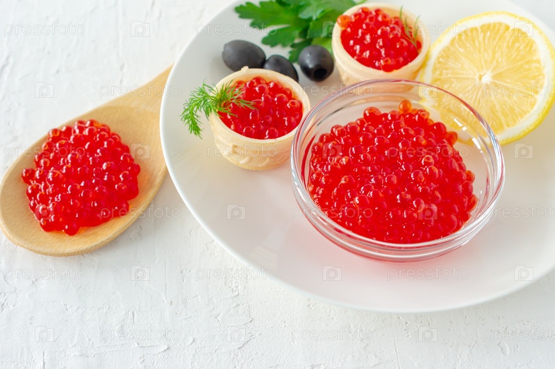 Тарталетки со сливочным маслом и красной икрой. Изысканная еда, закуски. Гастроном. Морепродукты