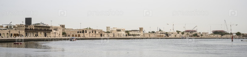 Здания в историческом районе Аль-Шиндага в Дубае, ОАЭ. Ясный день 14 марта 2020 г