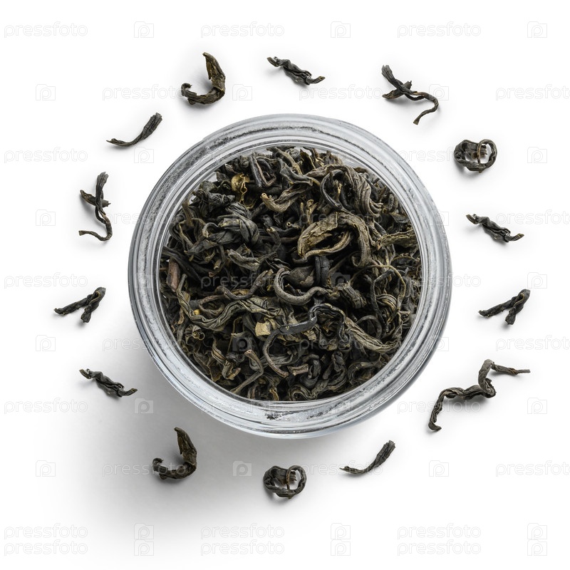 Зеленый чай на белом фоне. Вид сверху