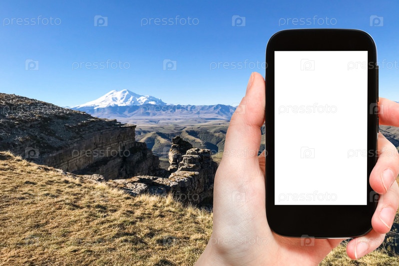 Скала плато Бермамыт и вид на гору Эльбрус