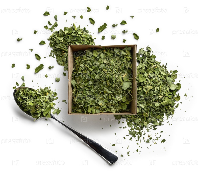 Сушеная моринга на белом фоне. Вид сверху